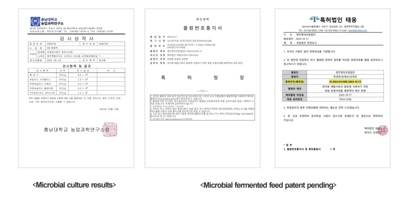 HACCP and eco-friendly (antibiotic-free) certificate and applied for a patent on microbial fermented feed