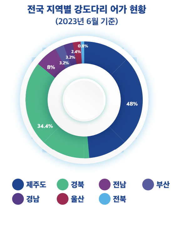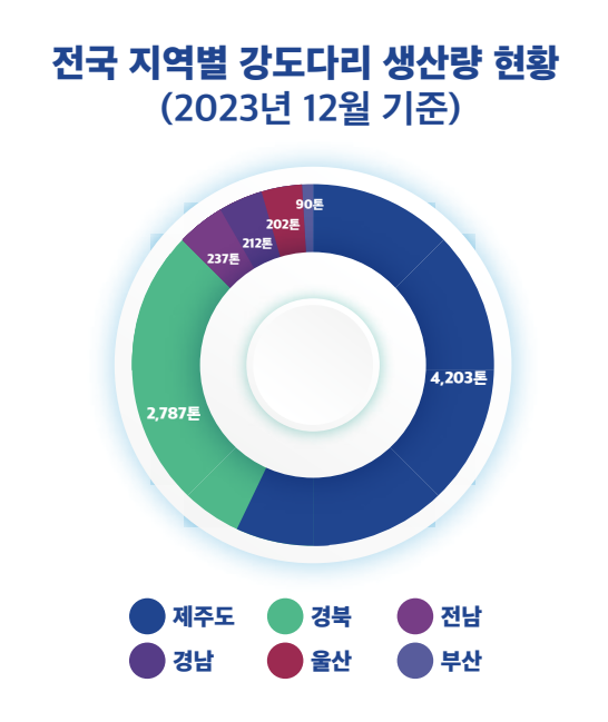 전국 강도다리 어가 현황과 생산량을 보시면 제주지역이 앞도적으로 높은 수치를 보여줍니다.